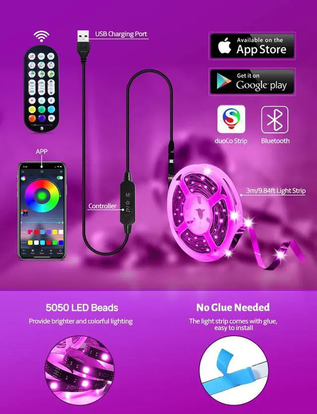 "duoCo Strip" is a single-function APP made only for manipulating rgb led strip lights. You don't need to enter any private information to use it directly through Bluetooth. It can be downloaded from official app stores such as the Apple Store/ Google Store.Very simple and safe.