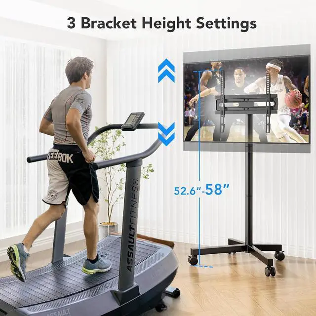 Height Adjustable & Tilt: The TV rolling stand supports 3 levels of height adjustment, and also allows the TV to be tilted up and down from 10° to -8°, you can find the best viewing angle anywhere in the room. The TV cart is suitable for all kinds of scenes, living room, bedroom, office, outdoor, meet all your needs