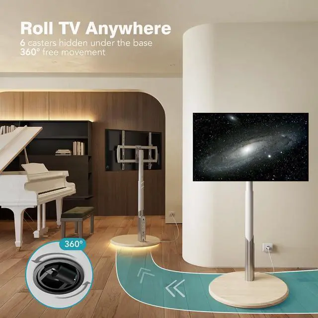 HEIGHT AND TILT ADJUSTABLE: The TV rolling stand supports 6 levels of height adjustment, TV viewing angle ±10° adjustment, and the appearance design can be perfectly integrated with the indoor environment. The TV Cart is suitable for all kinds of scenes, living room, indoor, wooden floor, to meet all your needs.