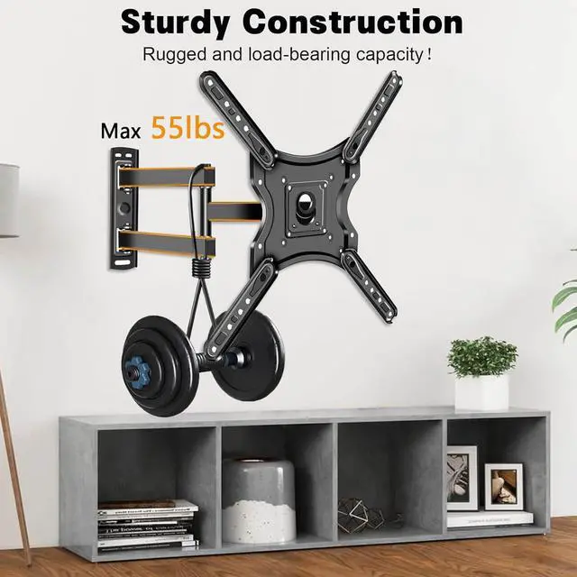 Solid & Durable Wall Mount TV Bracket: TV mount is made of heavy-duty aluminum and steel for reliable strength, durable and not easy to deform. Thickened articulated arm and technology of robot welding makes the whole monitor wall mount stronger and safer, with strong load bearing capacity up to 55 lbs (25 kg).