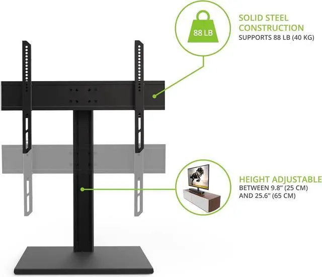 Height Adjustable - Raise the center of your TV up to 25.6 to provide space for a sound bar or other AV equipment.