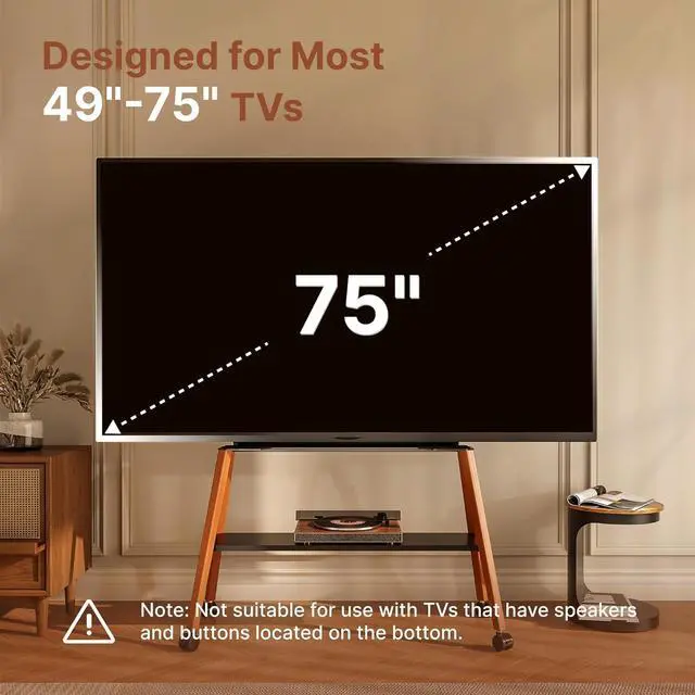 Heavy-Duty, Stable Support Built to hold up to 88 lbs, this stand with wheels combines premium wood and metal materials, offering durable and stable support for your TV without compromising style