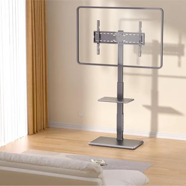 to 62.2 ";: The Floor TV stand with Power Outlet offers 3-position height adjustment for support bar and TV bracket, VESA panel features 2-position adjustment allow for precise position to suit seating preference for optimal viewing angles.