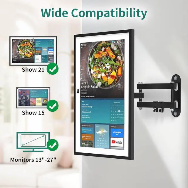 Wide Compatibility The mount is compatible with Show 21, Show 15 (1st, 2nd Gen) and 13-27 inches smart displays or pc devices, such as compatible with most TV brands like TCL, Sharp, LG, etc. The VESA plate hole size is 75x75mm and 100x100mm. Only a wall mount, do NOT include the device or plug.