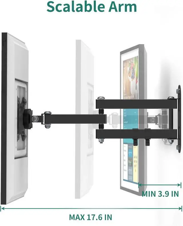 Space-saving Fold the arm back to 3.9 Inch to save room or extend it out to 17 Inch for more flexibility. Mount your device to the wall and clear-up the desktop space. Ideal for kitchen, office and bedroom.
