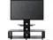Constructed with heavy Duty powder-coated scratch resistant steel in gloss black Finish and stylish curved engineered hardwood in Black Finish; glass shelves hold at least 6 AV components;