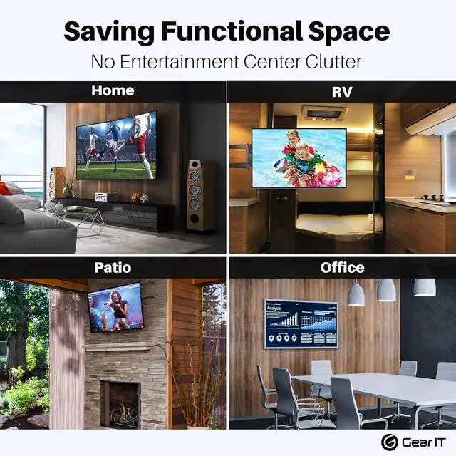 [SPACE SAVINGS] With a low profile TV wall mount can be place up to 2.3 in flush against the wall and can be pulled out up to 15.8 in to give you easy access to the back of your TV.