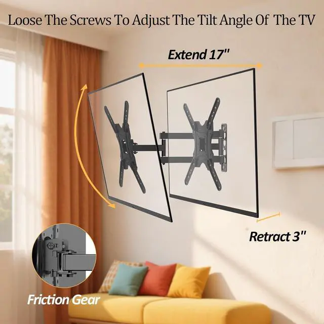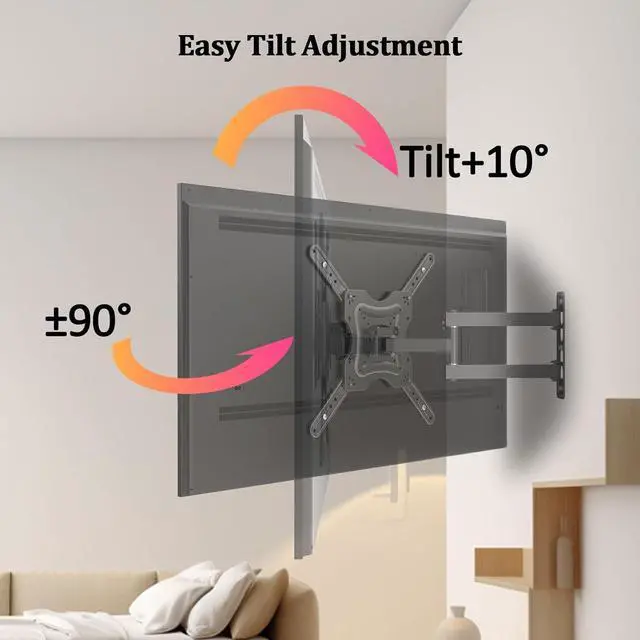 100%Enjoy effortless viewing comfort: Free up your desktop space with this fully mobile articulating tv wall mount, Designed for ergonomic workstation setups, it not only improves your working posture but also delivers a more comfortable viewing experience.