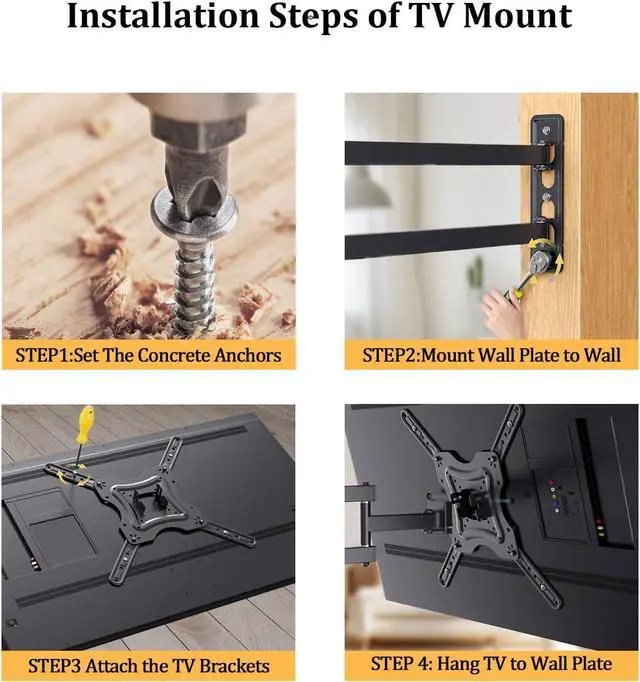 Easy Installation Process: This TV/Monitor wall mount bracket comes with step-by-step instructions on how to do it and all the necessary hardware for reading and installing, which will make mounting the bracket a breeze. The swivel tv wall mount is designed for single stud mounting and the removable TV plate ensures a quick installation that can be easily done by one person for simplicity and great convenience.