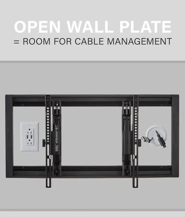 3-Step Install: This inclusive kit comes with everything you need to easily mount your TV in 30 minutes thanks to the extensive hardware pack, drilling template, and pre-assemble parts. The open wall plate design also allows for mounting directly over electrical outlets or media boxes for easy cable hookup.