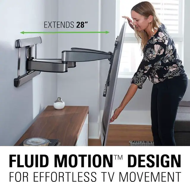 Extend your TV up to 28 inches, taking full advantage of your mounts tilt and swivel capabilities. Done with your show? Retract it back to sit just 2.15 inches from the wall for a low profile.