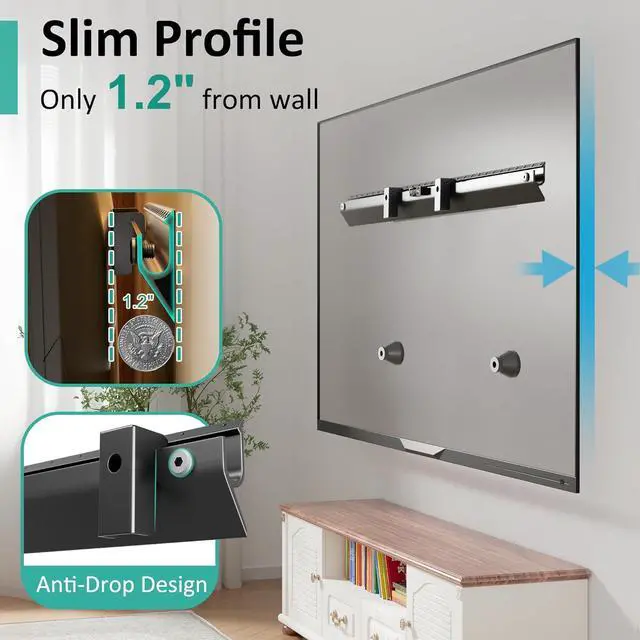 Slim Low ProfileTV wall mount keeps your screen 1.2 " from the wall for a sleek, modern look. Create more room in your living space, bedroom, or office while keeping the focus on your big screen