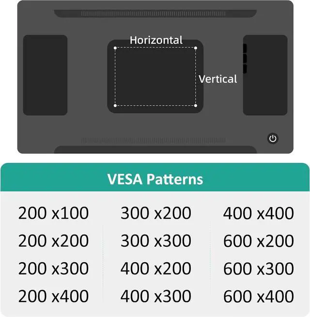 Wide VESA CompatibilityNo stud TV mount fits TVs with VESA patterns 200x100 to 600x400 mm. Works with popular brands, giving you flexible options for different screen sizes
