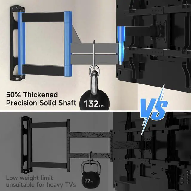 Universal Compatibility This full motion TV mount fits most 32-85 inch flat, curved, LED, LCD, OLED & QLED TVs with VESA 100x100mm to 600x400mm and supports up to 132 lbs (60kg). Always verify your TV' s size, weight, and VESA compatibility before purchase.