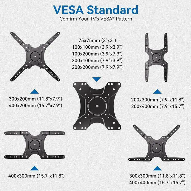 TV Mount CompatibilityImncya tv wall mount compatibility for Most 26-55 Inches flat or curved TVs and monitors from major brands like Samsung, Sony, LG, TCL, and Hisense. It supports up to 66 lbs and accommodates VESA patterns from 75x75 to 400x400. Articulating tv wall mount compatible with wood stud, concrete, and brick wall mounting.