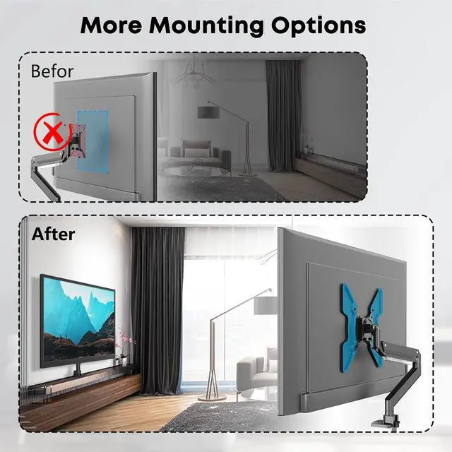 NOTICE: The weight of the VESA adapter bracket is 3.08 lbs, please confirm your desk mount or wall mount' s weight capacity, whether it can support the total weight of your TV and this bracket