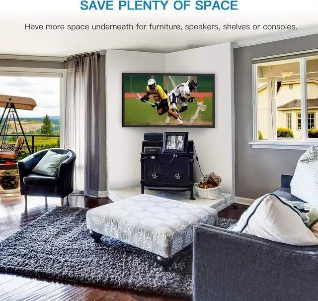 Space Saver: This corner TV wall mount allows for more flexible furniture arrangements and frees up tabletop space for decorations and AV components.