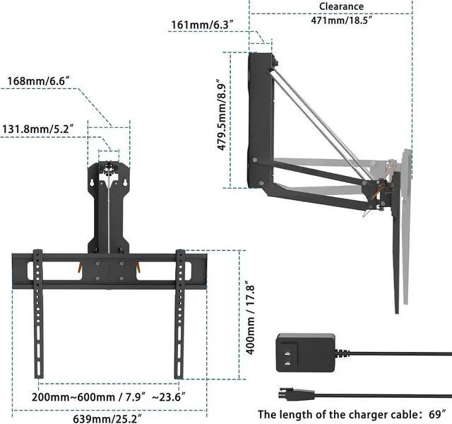 Convenient Remote ControlControl your TV with easethis fireplace tv mount pull down includes a remote for smooth adjustments at the touch of a button.