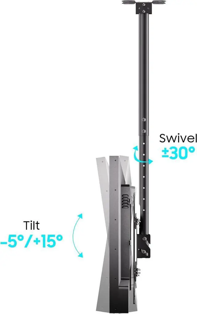 SAFETY & RELIABILITY: Safety is an important feature of the ceiling TV bracket, this ceiling TV bracket' s stable and safe design stands the test of time. Sturdy mechanics and reliable materials ensure the safe and smooth operation of the TV.