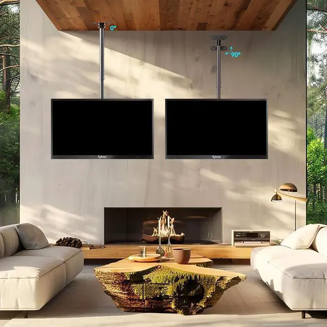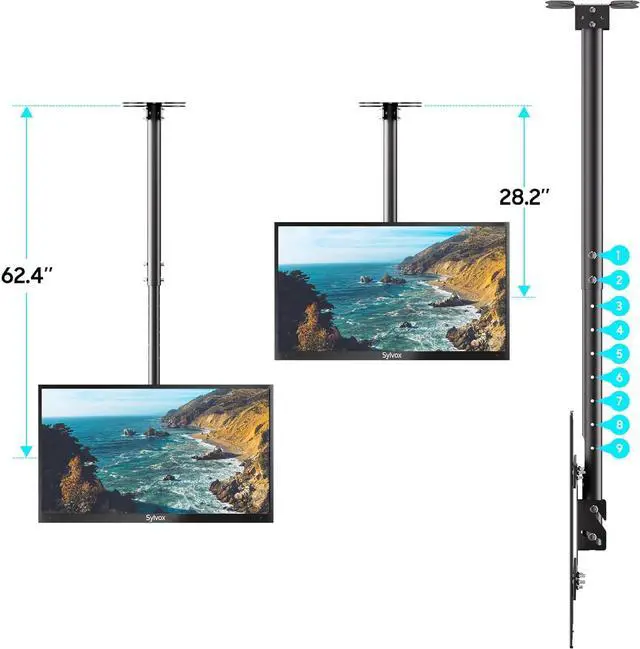 STYLISH DESIGN: Sylvox ceiling TV bracket combines practicality and stylish design to ensure it fits seamlessly into any space. The beautiful face value is more suitable for your comfortable use needs, and movie watching is more fun.