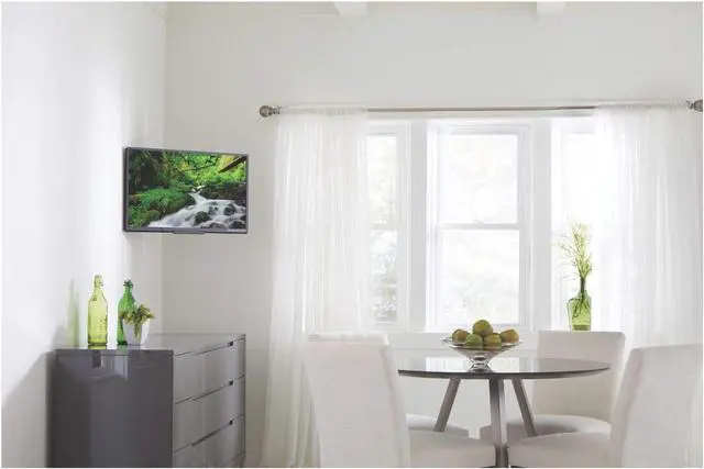 Combining both sleek esthetic and functional features, this wall mount smoothly extends 7 inch from the wall, tilts /- 12 degrees
