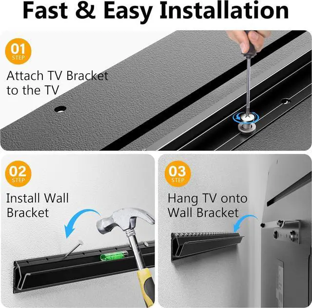No Stud TV Wall MountStop drillingStudless TV wall mount eliminates the hassle of searching for studs! Securely hang your TV on drywall or plaster walls using just a hammer. Enjoy a quick and easy installation with minimal wall damage, making it perfect for renters or anyone who wants an easy setup