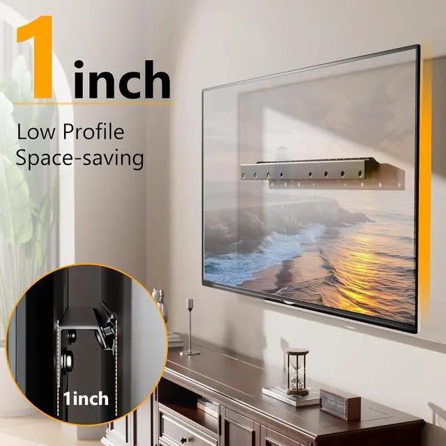 Sleek & Space-SavingThis ultra-slim Low profile TV mount keeps your screen just 1 inch from the wall, creating a clean, modern look while maximizing your space. Stylish, simple, and smart