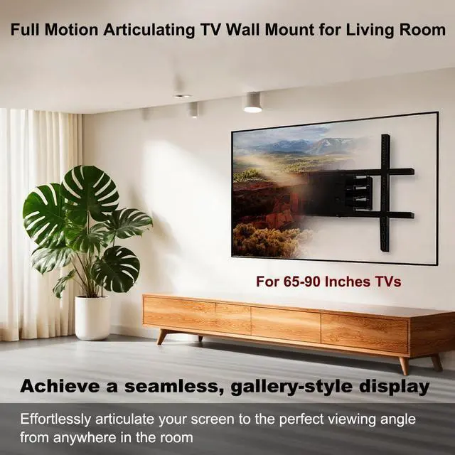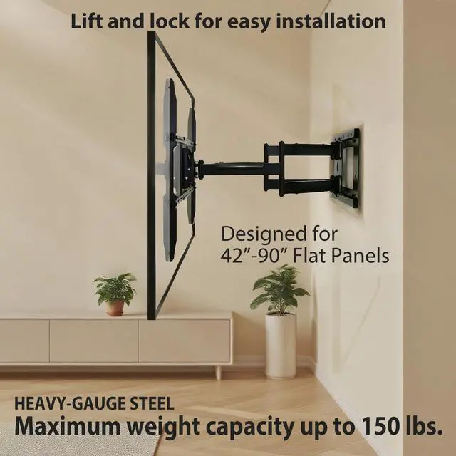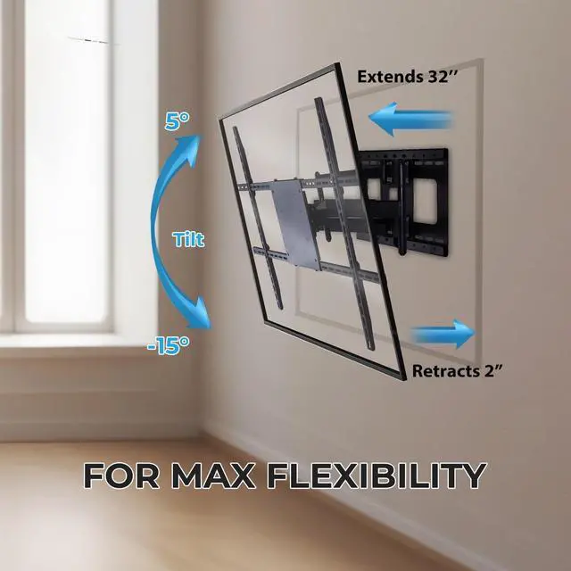 Large TV Bracket with Commercial-Grade Durability & Stability: Dual stud construction for stronger articulating TV wall mount. Supports TVs up to 120 lbs.