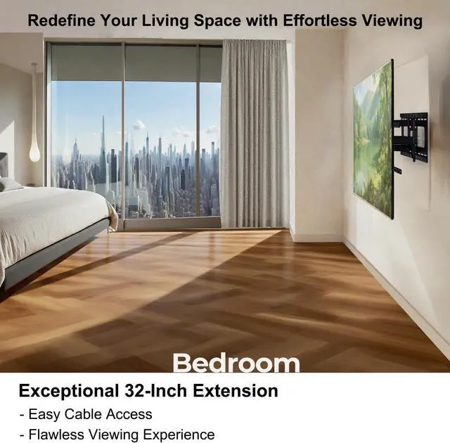 Rigid Dual Long Arms: Forged steel articulating arms smoothly extend 32 inches from the wall for immersive viewing, then retract to a slim 3-inch profile when not in use. Industrial-strength steel and anti-sag design ensure wobble-free performance for daily adjustments. Rigorously tested to hold 6X the average TV weight without failure - your screen stays securely mounted for years