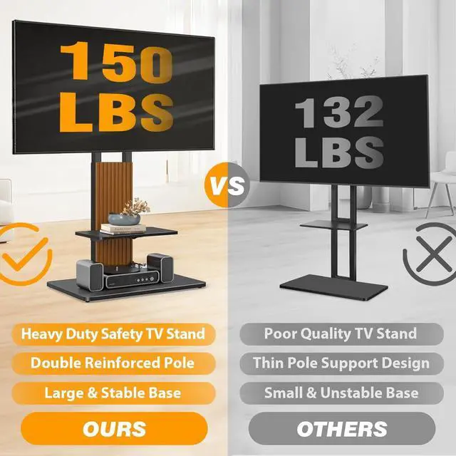 Large TVs: Our black tv stand fits most 55 60 65 70 72 75 80 82 85 86 90 inch flat/curved screens. The tv floor stand mount holds up to 150 lbs with VESA patterns 100x100mm to 800x600mm.