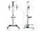 HEIGHT ADJUSTABLE ROLLING CART - Adjustable height TV bracket, camera shelf and AV accessory tray; TV mount can rotate between landscape or portrait viewing positions, and tilt as needed to reduce glare on the screen