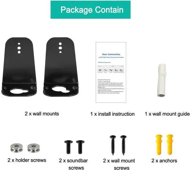 Wall Mount Bracket This wall mount kit are designed for Samsung soundbar, sturdy & durable. Our holder screws are made of high quality metal, more stably and sturdy than others plastic holder screws