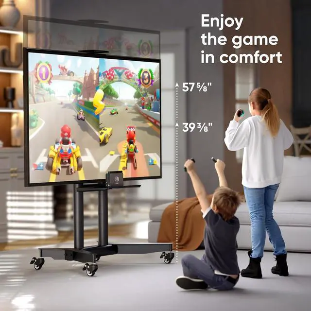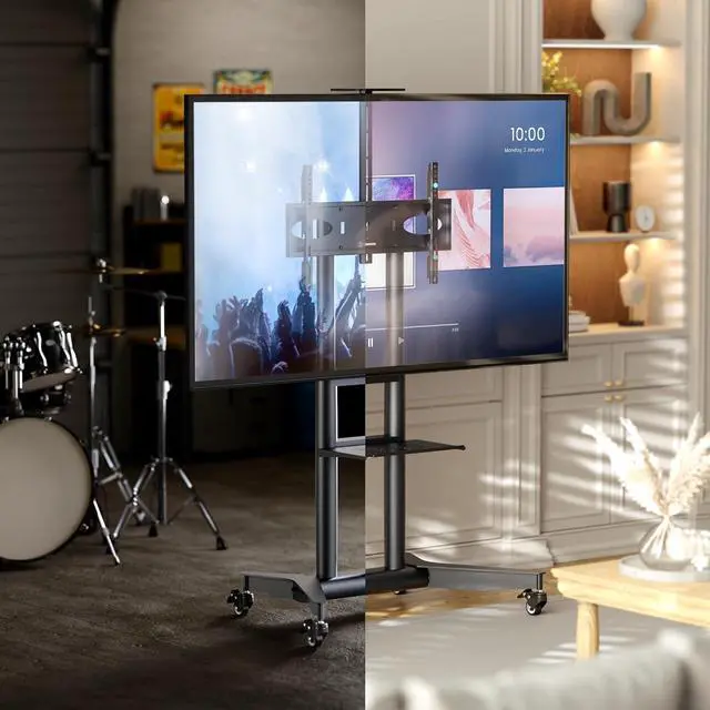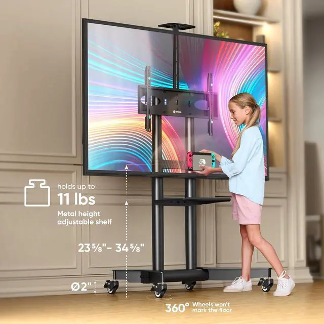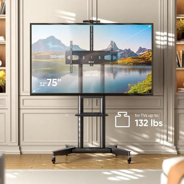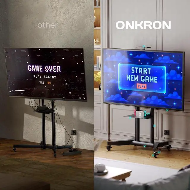 Universal TV Rolling Stand The ONKRON TS1571-B portable TV stand on wheels supports 32 - 75 inch screens that weigh up to 110 lbs fitting VESA 200x200 - 600x400 mm. This versatile TV rolling cart suits home office classrooms and meeting areas offering a stable and adaptable solution for modern viewing needs. Adjustable for Any Setup This rolling TV cart with wheels allows smooth height adjustment from 39.3 to 57.6 which makes it ideal as a movable TV stand on wheels for presentations online meetings or training sessions. A great match for users who need flexible positioning in both commercial and residential spaces.