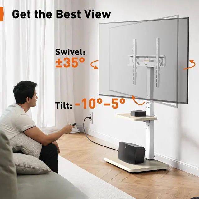 Unbeatable Viewing Experience: The floor TV stand swivels +/-35° to redirect the screen and tilts up by 8° to help minimize screen glare. Enjoy more freedom with a swivel TV stand that allows you to watch entertainment from anywhere in the room.