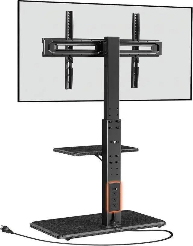 Integrated Power Outlet: The Perlegear floor TV stand is equipped with an integrated power outlet on the back with 2 USB ports (5V/2A) 3 AC outlets (120V/12A) and a 6.5 ft power cord. The Tall TV stand can easily power multiple devices ensuring a more streamlined look without the need for extra outlets or cables.