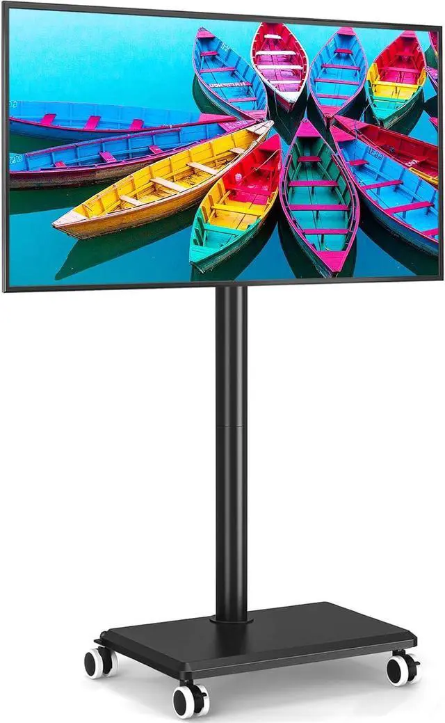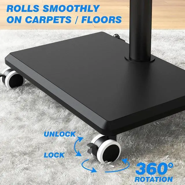 Lockable Wheels: Our rolling TV stand is equipped with 4 upgraded 360° silent wheels which can glide smoothly and stably on any surface be it wooden floors tiles or carpets. You can easily push it from the bedroom to the living room or kitchen or even to the patio; it can also be moved from one meeting room to another offering flexible usage. Additionally the wheels are fitted with locking mechanisms allowing you to fix it in any position for your convenience to enjoy the TV at any time.