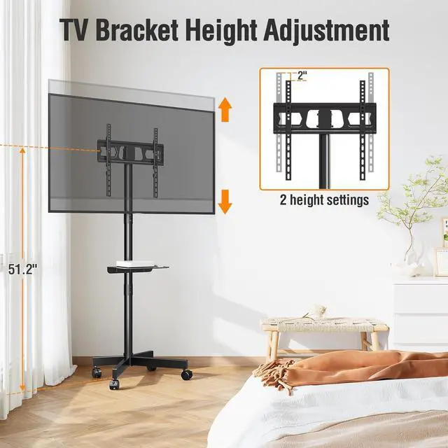 Highly Compatible: convenient for moving your TV around at home or in the office our TV stand meets your different needs. Effortlessly move your TV from the living room to the bedroom. Perfect for commercial use in shopping malls offices conference rooms trade shows hotels and more.