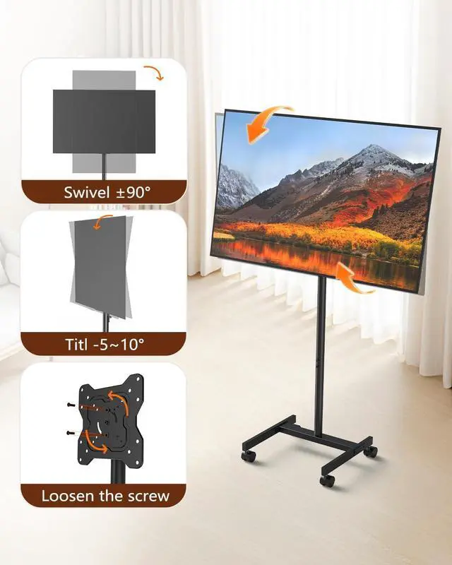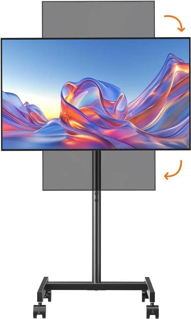 Portrait to Landscape: The TV stand can be easily rotated between landscape and portrait orientation (90° rotation) allowing you to quickly switch the screen for games presentations or other tasks. Our TV mount also supports a tilt angle of -5 to +10 degrees which improves your viewing experience and offers flexible viewing options.