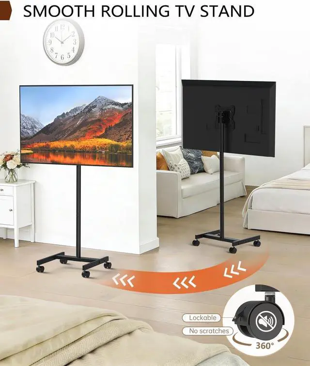 Suitable for Many Occasions: The rolling TV stand is suitable for bedroom living room gaming room Gym office classroom mall or even outdoor. You can rotate the TV/monitor horizontally or vertically to achieve different usage purposes.