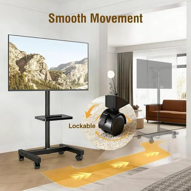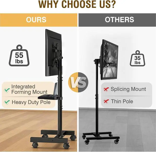Compatibility: This tv mount stand fits most 19-50 inch flat/curved screens and monitors brands. The Mobile tv stand holds up to 55 lbs with VESA patterns 75x75mm to 200x200mmTilt &