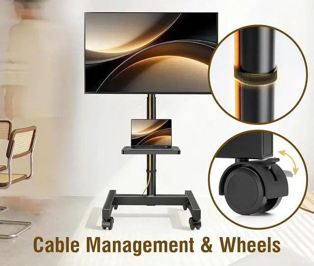 & Space Saving: This 50 inch tv stand is made of alloy steel in case of unexpected bump by your kids or pets. The tv stand with mount takes little footprint and you can place it in the back of the cabinet to save space. A good choice for home dorm room fitness room apartments bedroom living room kitchen office studio exhibition hall trade show etcCable