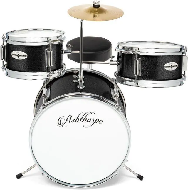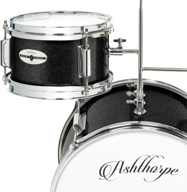 Introduce your aspiring young musician to the wonders of music with this Ashthorpe 3-piece junior drum set. Ideally for aspiring young musicians, this junior set is the perfect way to allow free reign to experiment and practice playing, and is a fantastic upgrade from traditional plastic drum sets. Featuring hardwood Poplar shells, triple flanged hoops, chrome accents and finished with a glossy, vibrant exterior, these drums provide impressive sound in an aesthetically pleasing design that will delight young aspiring musicians. This Ashthorpe drum set looks like and compares to a full-sized adult set, making it a favorite for grown-up musicians who love engaging in teacher-student play time, each on their own respective set! This drum set includes all instruments and hardware you need to get started.