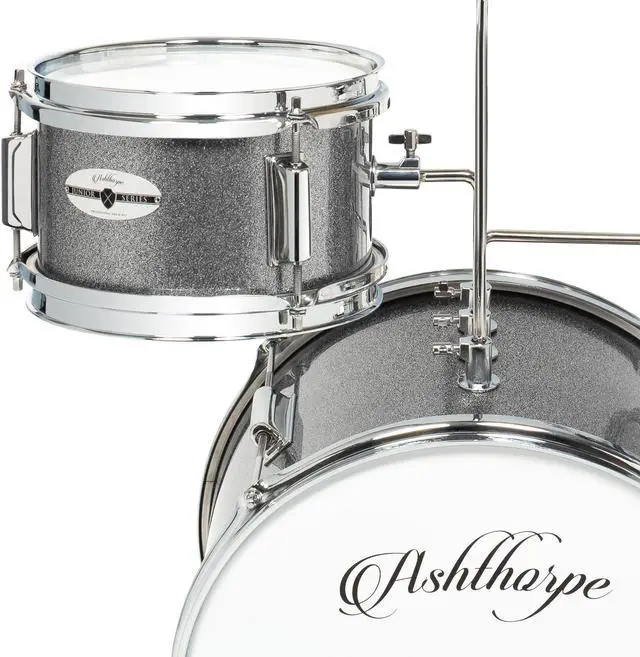 Introduce your aspiring young musician to the wonders of music with this Ashthorpe 3-piece junior drum set. Ideally for aspiring young musicians, this junior set is the perfect way to allow free reign to experiment and practice playing, and is a fantastic upgrade from traditional plastic drum sets. Featuring hardwood Poplar shells, triple flanged hoops, chrome accents and finished with a glossy, vibrant exterior, these drums provide impressive sound in an aesthetically pleasing design that will delight young aspiring musicians. This Ashthorpe drum set looks like and compares to a full-sized adult set, making it a favorite for grown-up musicians who love engaging in teacher-student play time, each on their own respective set! This drum set includes all instruments and hardware you need to get started.