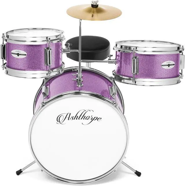 Introduce your aspiring young musician to the wonders of music with this Ashthorpe 3-piece junior drum set. Ideally for aspiring young musicians, this junior set is the perfect way to allow free reign to experiment and practice playing, and is a fantastic upgrade from traditional plastic drum sets. Featuring hardwood Poplar shells, triple flanged hoops, chrome accents and finished with a glossy, vibrant exterior, these drums provide impressive sound in an aesthetically pleasing design that will delight young aspiring musicians. This Ashthorpe drum set looks like and compares to a full-sized adult set, making it a favorite for grown-up musicians who love engaging in teacher-student play time, each on their own respective set! This drum set includes all instruments and hardware you need to get started.