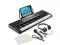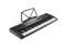 Primary functions include click, master, and accompaniment volume, along with transpose and tempo control. Input and output jacks for audio, phone, and mic are also integrated. This keyboard also includes M1/ M2/ and M3 memories. As for performance features, this portable piano has no shortage. It includes 300 timbres with 5 voices, 300 rhythms, 21 demonstration songs, single and fingered chords for bass chords, and One-Key, Follow, and Ensemble learning modes. Rhythm functions include start, stop, sync, fill-in, and metronome.