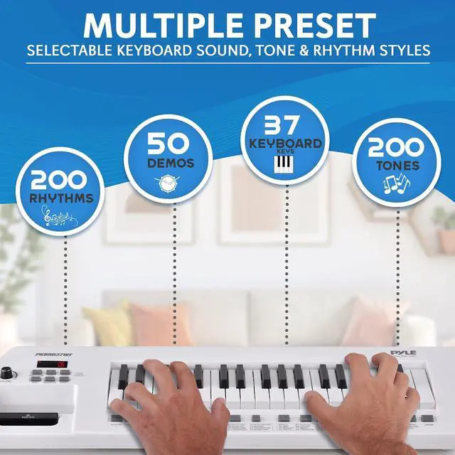 MULTIPLE TONES, RHYTHMS & DEMOS - The digital musical keyboard features 200 tones, 200 rhythms, and 50 demo songs. OKON mode lets anyone play along by pressing any key. It's a fun and educational way to learn piano keyboard basics