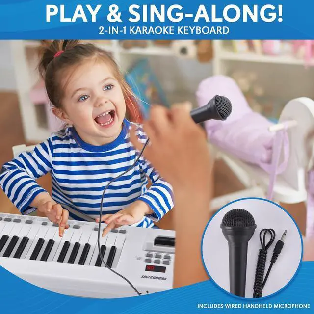 FULL 37 KEYS WITH MICROPHONE - This 37 key piano keyboard includes stereo speakers and a wired mic for instant karaoke fun. Great for kids, beginners, and casual players. Enjoy music anywhere with this karaoke keyboard with microphone setup