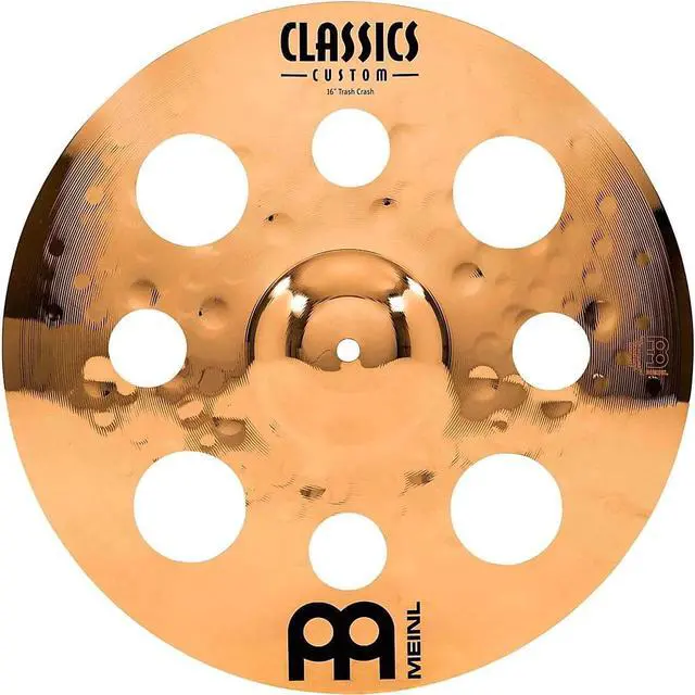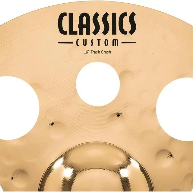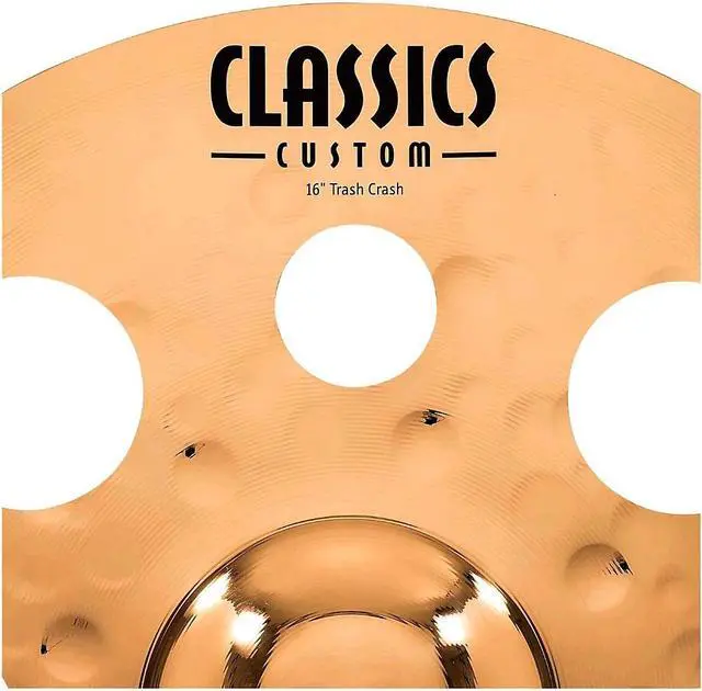 Different sized cut-outs and thin material create an unmistakable trash sound. Soft, buttery feeling yet with a loud, penetrating and sparkling spread in a fairly narrow range. Classics Custom cymbals from MEINL are designed to cut above the roar of guitars, doing most of the work for you so you don't have to play as hard to be heard. MEINL utilizes a B12 bronze alloy to make these cymbals pack a loud and bright punch with rich musical tones. The Classics Custom 16-inch trash crash delivers an immediate trashy response with a medium-bright short sustain due its specially drilled holes.