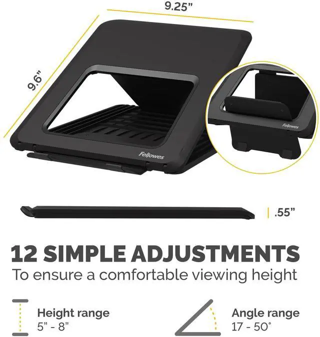Fellowes Breyta Collection Height Adjustable 14" Laptop Stand, Black 100098500