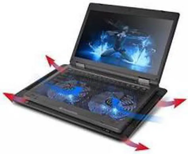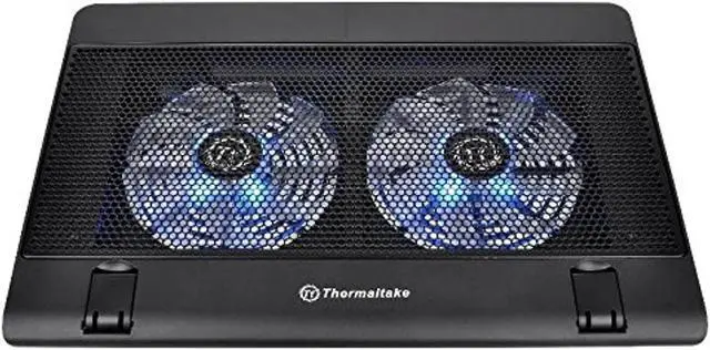 Thermaltake Massive 14 laptop cooler. Silent dual 14cm blue LED fans with adjustable fans speed control knob. Metal mesh top for superior air flow. Two USB ports allows connection for additional devices. For laptop up to 17 in size.